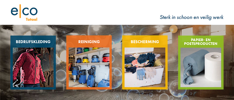De beste kwaliteitsproducten voor je bedrijf. Veilig, praktisch en hygiënisch werken is tegenwoordig aan de orde van de dag. Deze ontwikkeling heeft ervoor gezorgd dat het aantal verkrijgbare persoonlijke beschermingsmiddelen, bedrijfskleding en schoonmaakartikelen sterk is gestegen. Door dit enorme assortiment is het niet altijd even makkelijk om een juiste keuze te maken. Een keuze maken tussen bijvoorbeeld de Persoonlijke Beschermingsmiddelen is uitermate lastig. Onjuist gebruik van deze PBM kan namelijk risico’s veroorzaken. Om de juiste PBM te kiezen helpt Elco Totaal je daarom graag met het maken van de juiste beslissing. Maar ook bij de keuze tussen machines, kleding of schoonmaakproducten helpen ze je graag.