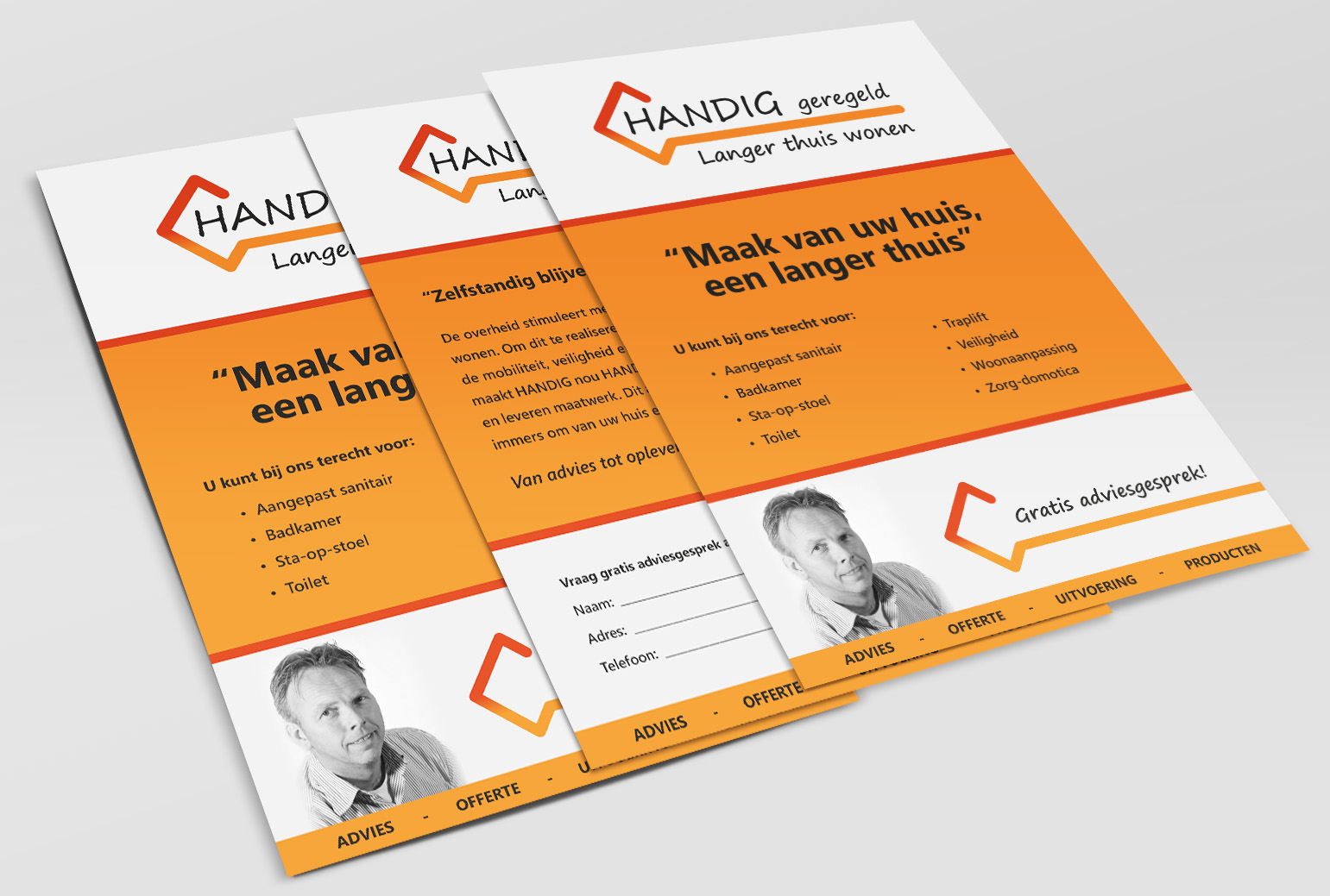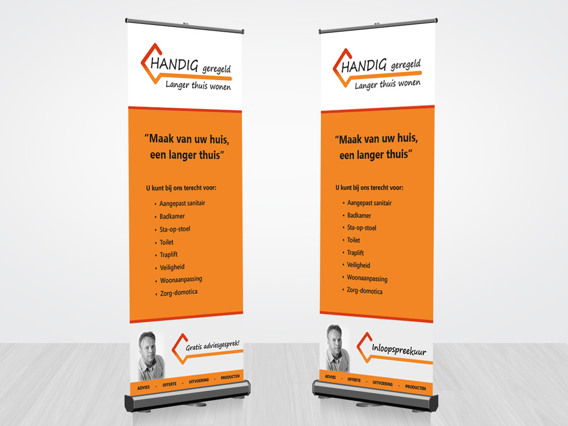 'HANDIG geregeld' richt zich op de steeds groter wordende doelgroep in de Veluwe; de vergrijzende mens. Het doel is om bij deze mensen in huis hulpmiddelen te creëren waardoor zij langer thuis kunnen wonen. Dit doet Han Mostert zowel rechtstreeks voor particulieren, als via gemeenten en woonzorgorganisaties in groter verband. Daarbij geeft Han het advies, maar voert hij de werkzaamheden ook zelf uit. Dit doet hij met persoonlijk advies, waarin hij werkt aan een creatieve oplossing.
