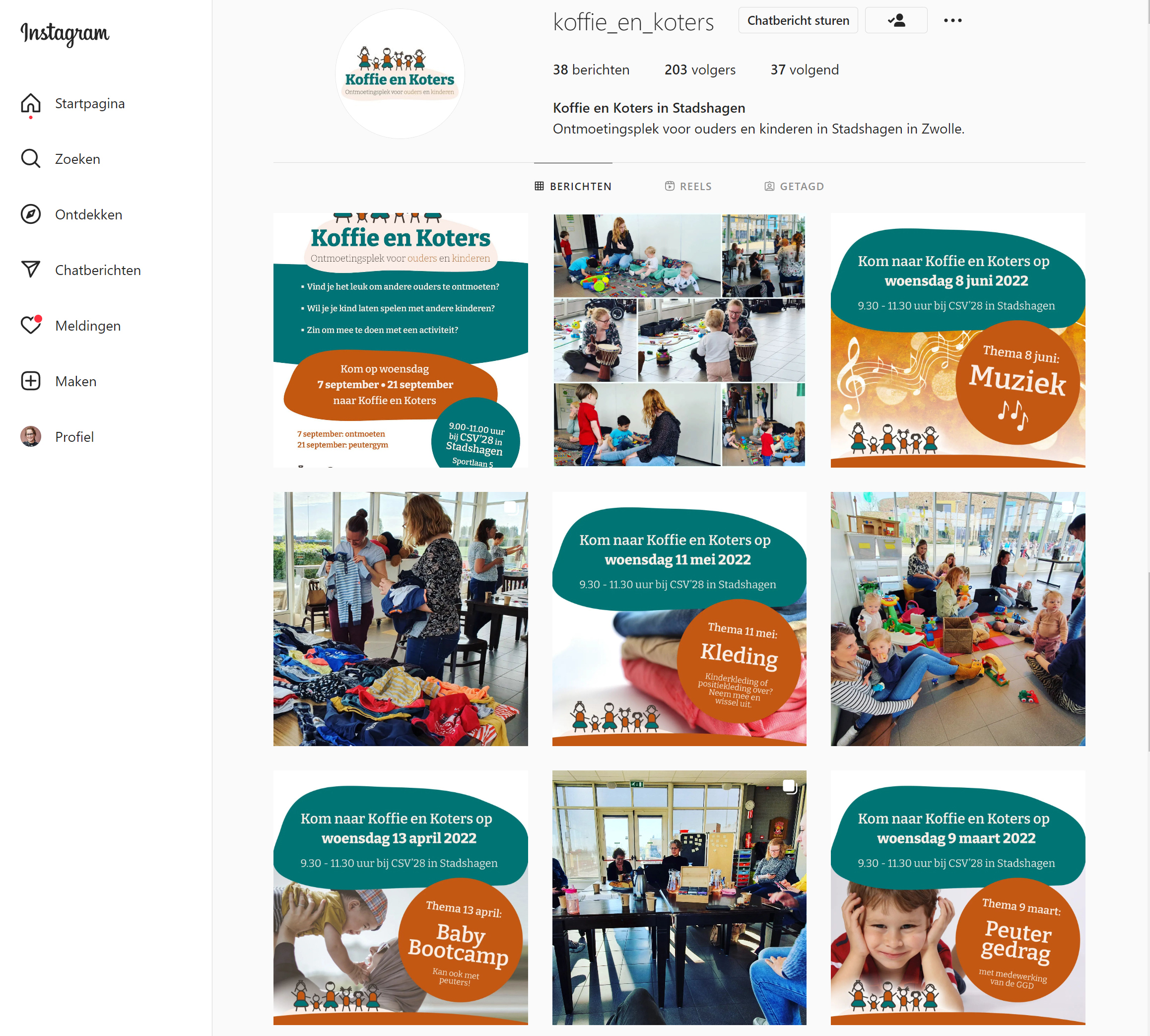 Ontmoetingsplek voor ouders en kinderen in Stadshagen in Zwolle. Samen met het sociaal wijkteam, gemeente, GGD, verloskundigen, basisscholen, kinderopvang, Ouderplatform Nona, welzijnswerk, ouders en Viaa is er in 2021 een pilot gestart om te kijken of er behoefte is aan een ontmoetingsplek in Stadshagen voor ouders met jonge kinderen. Hier bleek veel behoefte in te zijn en zodoende is 'Koffie en Koters' opgericht.