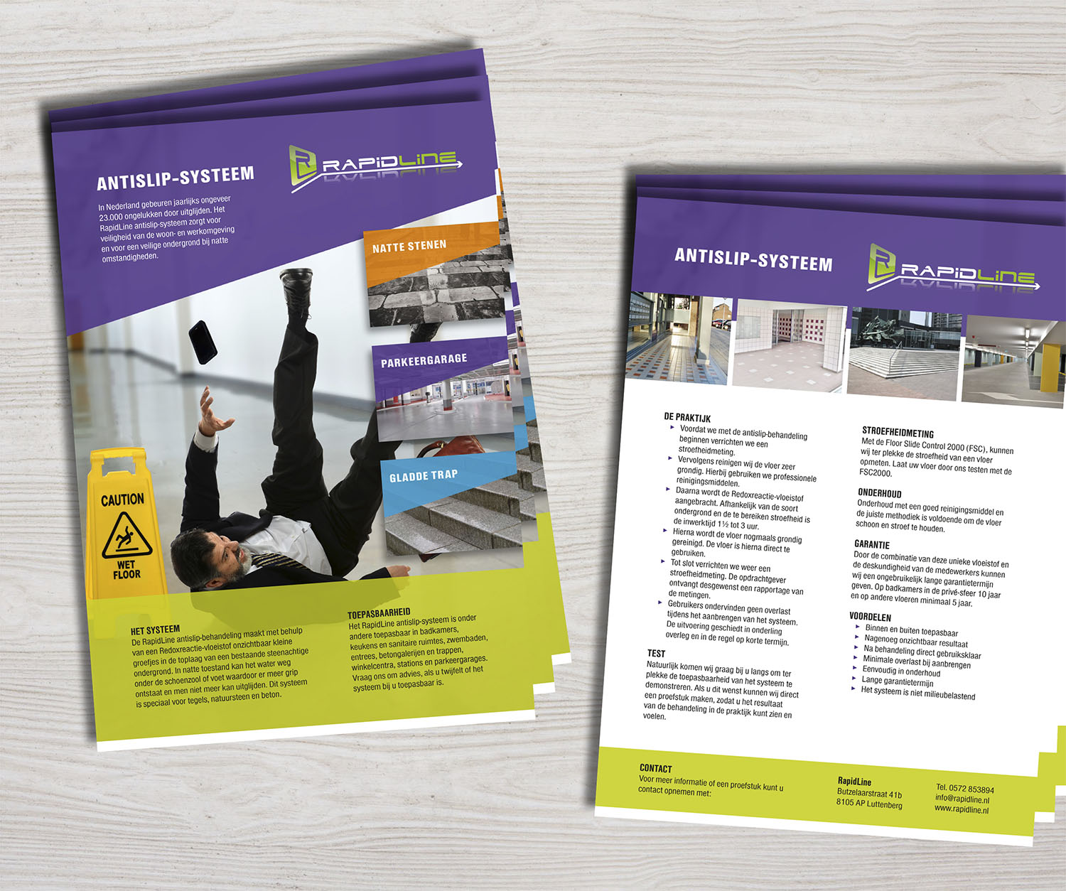 RapidLine brengt markeringen aan om structuur en veiligheid te realiseren in productieruimte of werkomgeving. Dit houdt in; opstelvakken voor pallets, wandelpaden (arbopad), safetyroutes, brandkraanaanduiding, pictogrammen, parkeerplaatsbelijning of terreinbelijning. RapidLine brengt vloercoating aan om uw betonconstructie te conserveren, vloeren stofvrij te maken, de cosmetische uitstraling of de stroefheid te verbeteren.