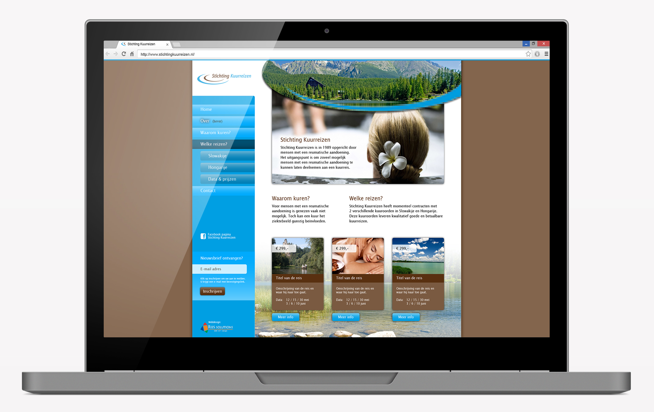 Stichting Kuurreizen is in 1989 opgericht door mensen met een reumatische aandoening. Het uitgangspunt is om zoveel mogelijk mensen met een reumatische aandoening te kunnen laten deelnemen aan een kuurreis. Voor mensen met een reumatische aandoening is genezen vaak niet mogelijk. Toch kan een kuur het ziektebeeld gunstig beïnvloeden. Stichting Kuurreizen heeft momenteel contracten met 2 verschillende kuuroorden in Slowakije en Hongarije. Deze kuuroorden leveren kwalitatief goede en betaalbare kuurreizen.
